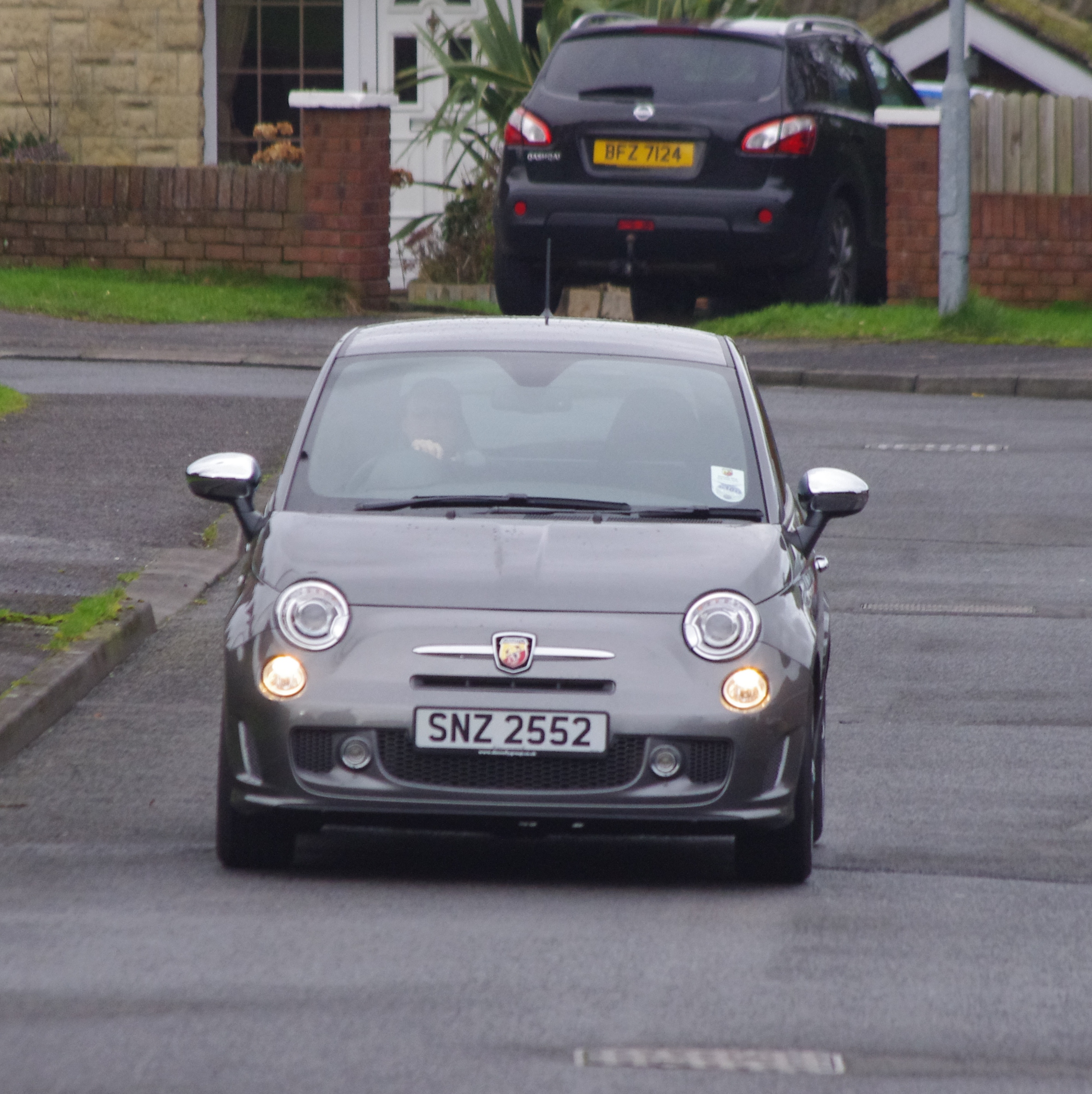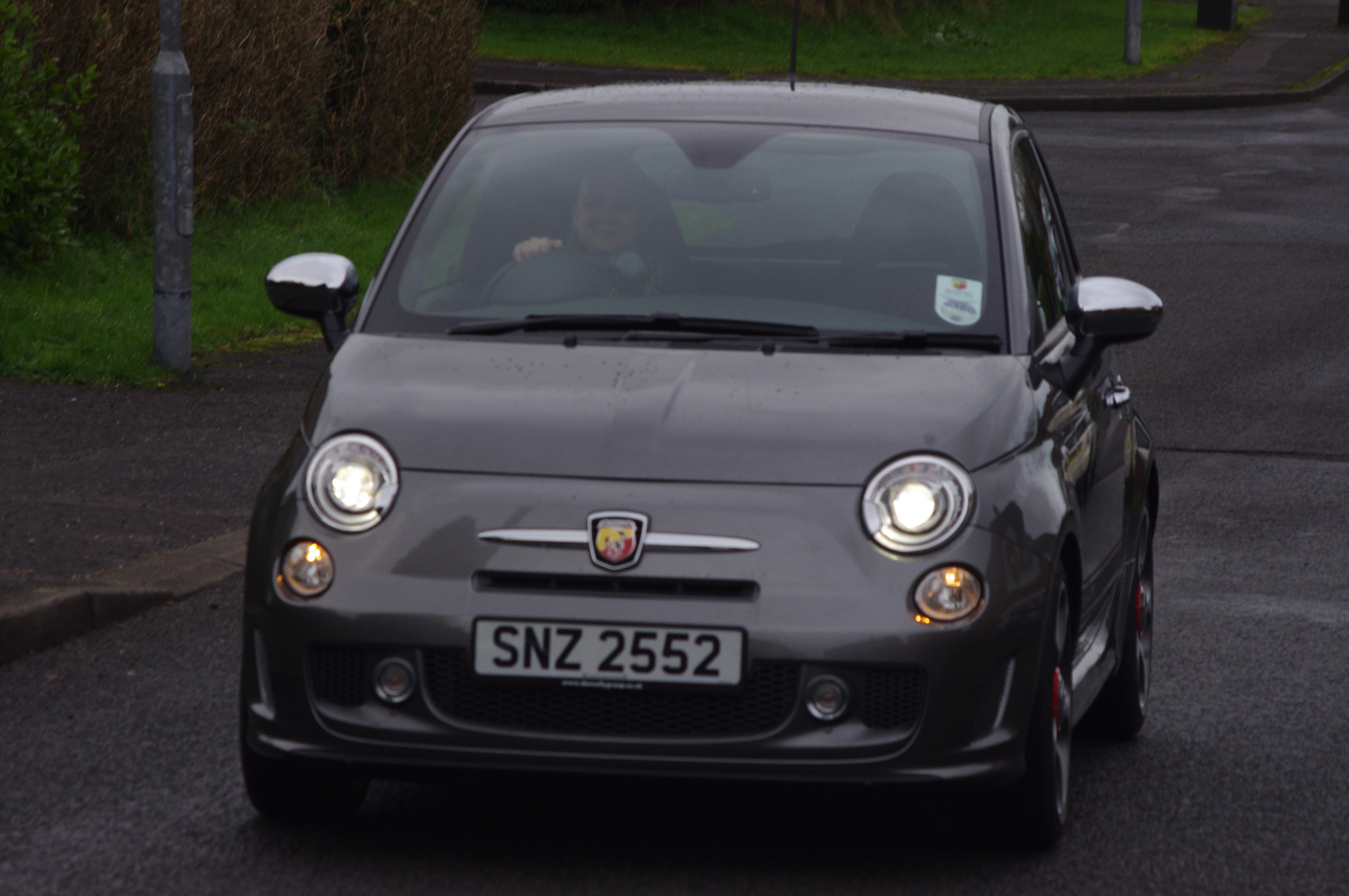 I began to wonder when Jeremy suggested that we take a race up to Donnelly’s at Mallusk “just for a look” at what they had in the showroom. I have to confess that I had always thought the Fiat 500 was a cute and fun looking car but I’d never considered buying one. That was until I clapped eyes on an Abarth 595 Competitizione. From the moment I saw it I was intrigued and wanted to take a closer look. It’s appearance was certainly eyecatching but when I hopped into the demonstrator model I was even more taken by the noise it made as the engine burst into life and burbled purposefully as I turned the ignition key.