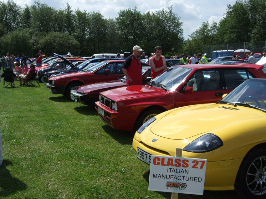 Another enjoyable day for NIIMC members at Ballymena Car Fest. Held on 8th June 2013 at Ballee Playing Fields, this was the show’s fourth year running, during which it has not only grown in size but also popularity. Club members cars on display were Dave’s Alfa 147 GTA, Chris’s Alfetta GTV, Peter’s Lancia Delta Integrale Evo 2, Stuart’s early Fiat 500, Brian’s Fiat 850 Coupe, Johnny’s Alfa 159 Ti SW, Ricky’s Fiat X/19, Johnny’s Ferrari 348 TS, James’s Fiat Coupe and Stephen’s Lancia Delta Integrale Evo. The Italian section was also graced with various other Italian cars.