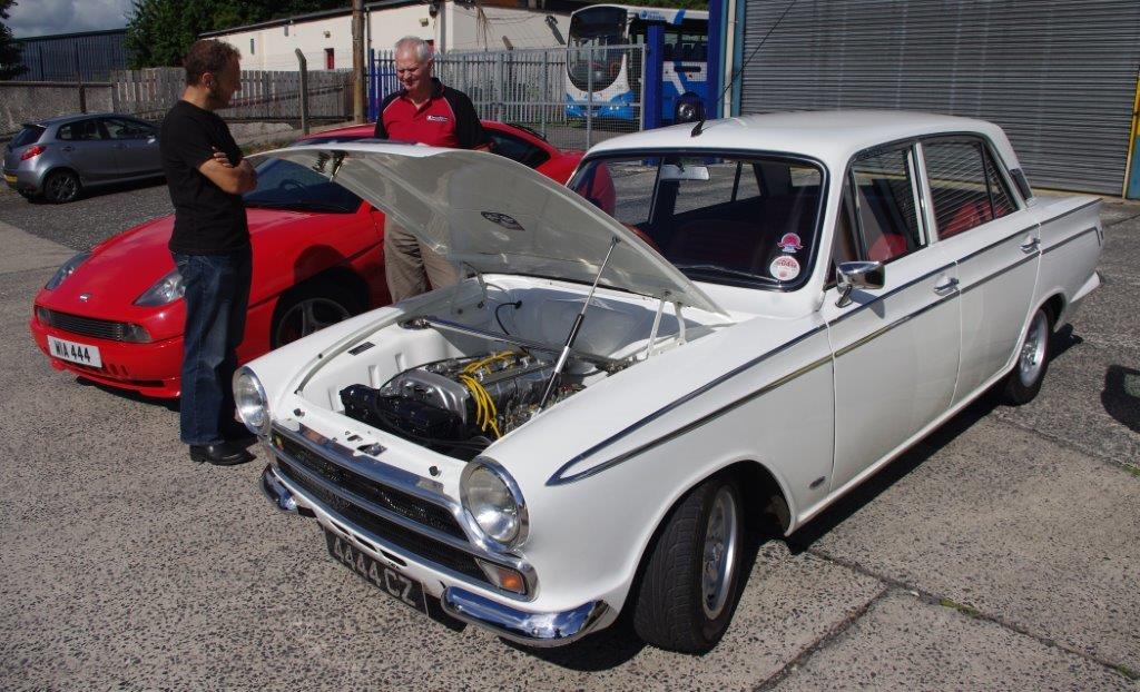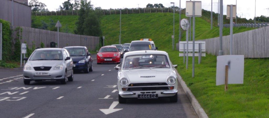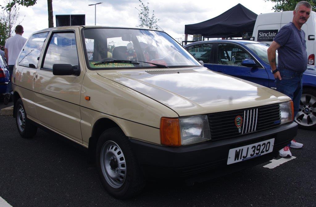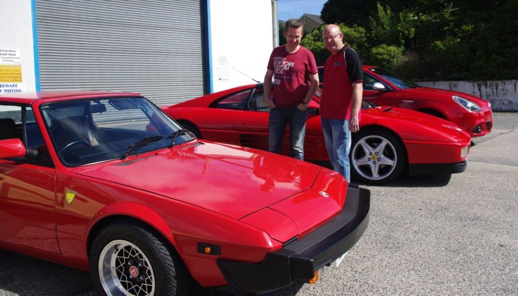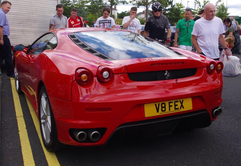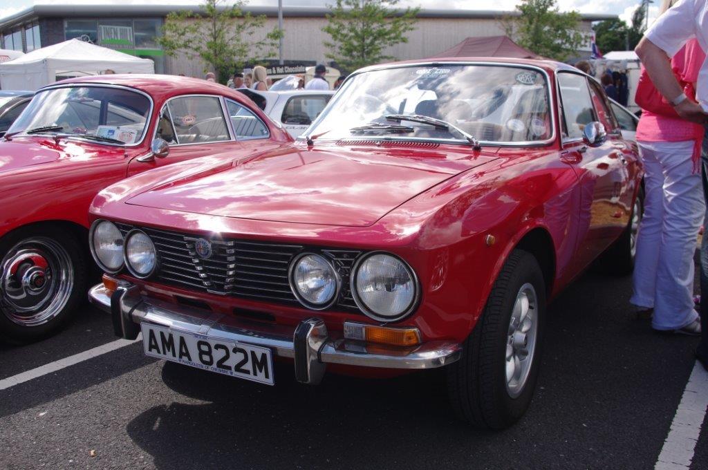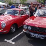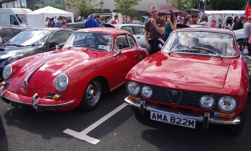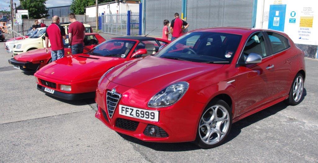 I think Johnny was enjoying the drive so much that he forgot to pull in for the NIIMC team photoshoot of our line up of cars with the breathtaking Mournes as the backdrop. If truth be told I think we all enjoyed some of the impressive driving roads that we cruised (or raked) along and before long we were on the outskirts of Banbridge, The Outlet was our final destination and we hoped to join the car show that was being held there – unfortunately by the time we arrive d all the spaces were taken so we couldn’t display our cars but we still enjoyed looking around at the variety of vehicles at the show. Fords, Vauxhalls and Japanese motors were well represented but there weren’t too many Italian cars on display and we weren’t able to sign up any new recruits to the Club.