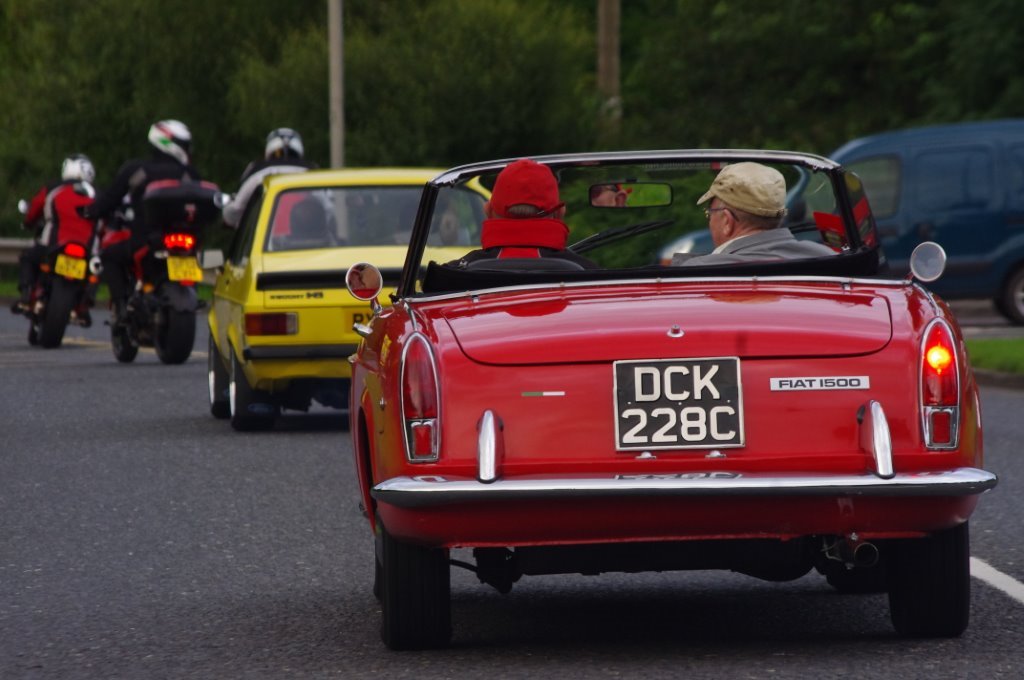 I choose not to drive to the event, preferring to travel in Cyril’s Fiatina – this gave me the opportunity to experience the impressive acceleration of his Guy Croft prepared 2 litre Fiat Twin Cam engine and the chance to take a few photos on the move (or at least attempt to). I had mixed success but some of the photos aren’t too bad – I am sure you will agree that Herbie really looks the part in his NIIMC coat cruising along in his classic Fiat – I’m really not sure whether Herbie or the car is more eyecatching!!!