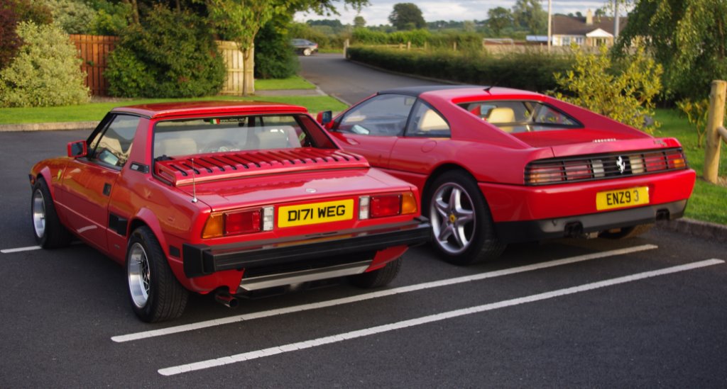 The club members cars included Johnny’s Ferrari 348 TS, Ricky and Graeme’s Fiat X/19’s, Deirdre’s Panda, Dixy’s 500 Abarth, Alastair’s Alfa Sprint, Cyril’s Fiatina, Mark’s Alfa GTV (freshly painted and looking smart) and of course not forgetting Herbie’s Fiat 1500 Cabrio. Brian Mackey was there too but he had sneaked into the carpark in his primrose yellow MGB GT instead of the Fiat 850 Coupe which we are more accustomed to seeing him in. I’m not sure what part of the MGB is Italian but we will let Brian off for this minor misdemeanour on this occasion. Other Italian cars included a Maserati 3200 GT driven by William who is now the latest recruit to the club (welcome to NIIMC William) and a Fiat 126 driven by William’s brother.