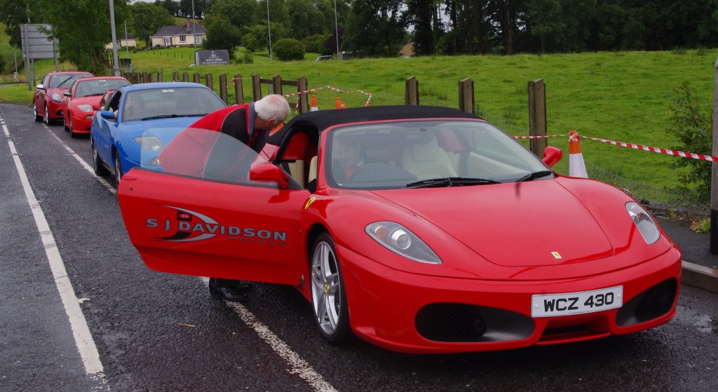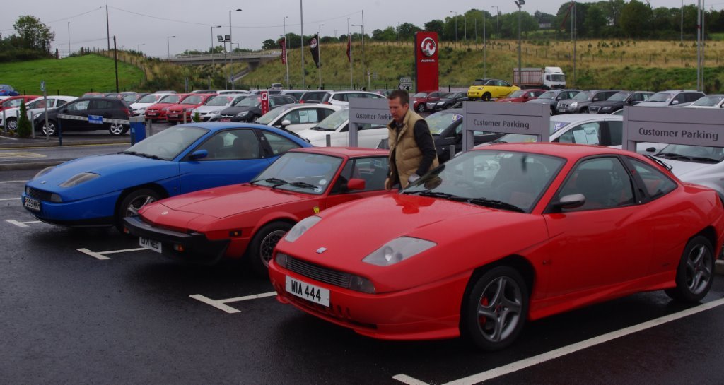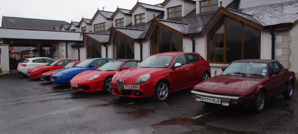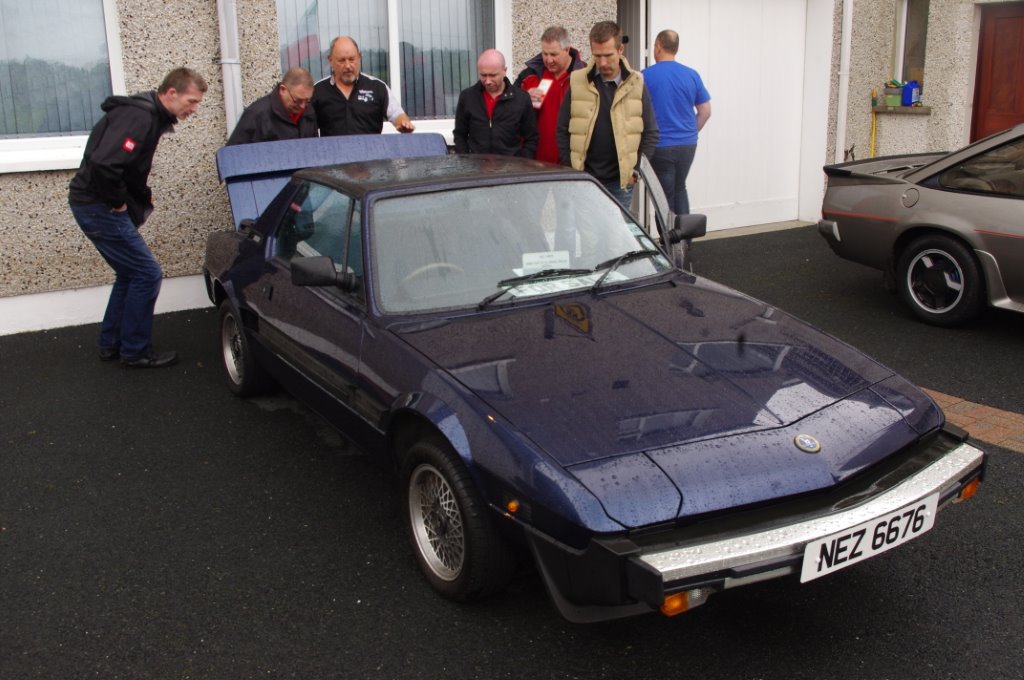 On arrival at Donnelly’s we were welcomed by the staff who showed great interest in our selection of Italian metal and also treated us to tea/coffee and sandwiches – delicious and much appreciated. Terence Donnelly talked to members and we were delighted when he advised that he was keen to strengthen Donnelly Group’s link with our club. Pouring rain did not deter us as we set off to Omagh, picking up a Ferrari at Ballygawley. Before too long we arrived at the home of Philip Faithfull, owner of the Abingdon Collection. There was ample parking for our cars and Philip then ushered us inside where our tour of his impressive mix of memorabilia would begin. Philip was the perfect host, telling a range of fascinating stories about how he had acquired certain items. The variety of items on display was truly amazing. As a group of car enthusiasts we were particularly interested in his collection of vehicles, from a selection of MG’s – a concours condition 1953 MGTD and 1968 MGC as well as a 1957 MGA Fixed head coupe and a 1980 MGB. In addition to this Philip also had a variety of other cars on display including a 1978 Porsche 911SC, a 1986 Opel Manta GTE and a 2010 Mazda MX5 20th Anniversary. A totally original 1983 Ford Capri 280i in black drew many admiring glances and the collection would not have been complete without an Italian model a 1989 Fiat X1/9 Gran Finale.