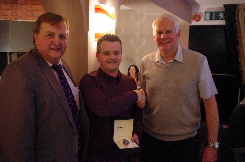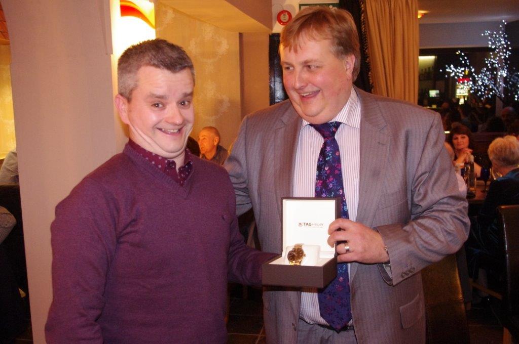 The person who enjoyed himself the most was without doubt Lorcan Flanagan who scooped the much coveted prize of the TAG Heuer Carrera watch in our prize draw – he will forever now be known as Lucky Lorcan and as the photograph shows he could hardly contain his excitement as he was presented with the watch by Mervyn Shannon, who through his skilful negotiation had persuaded TAG Heuer to donate the watch to our club as a special prize in our tenth anniversary year.