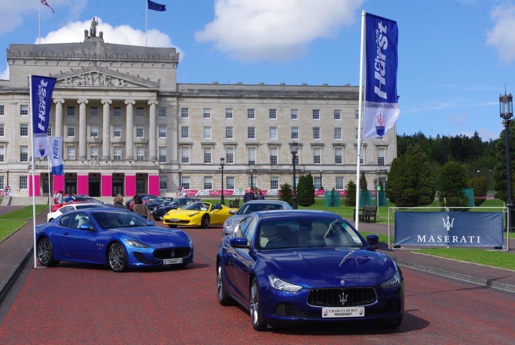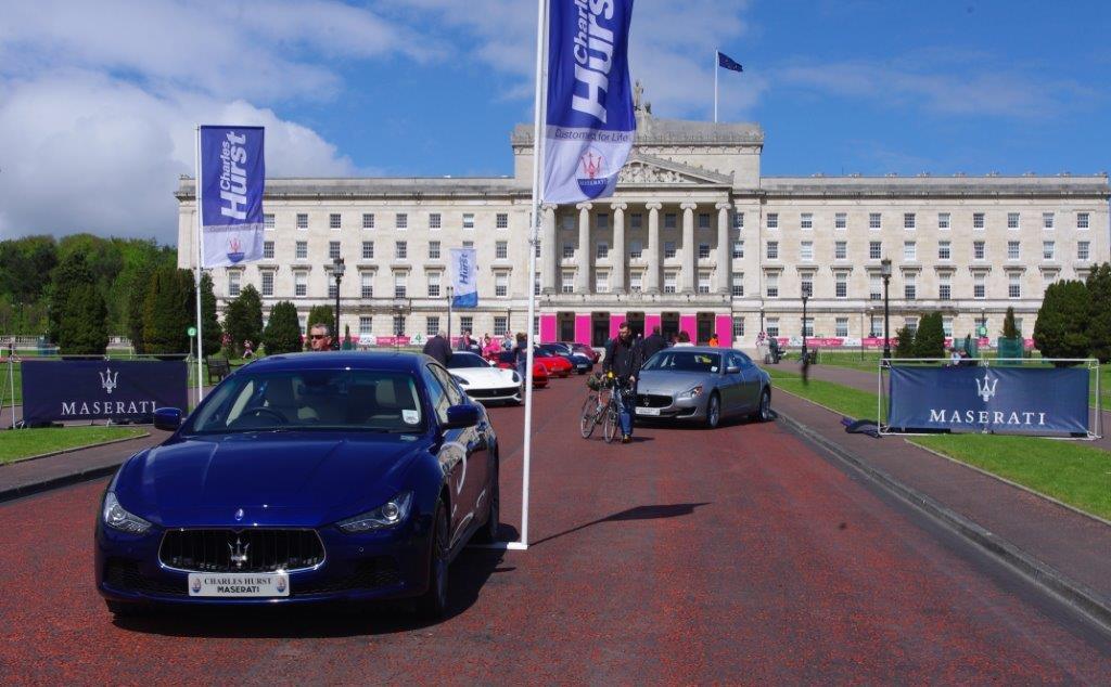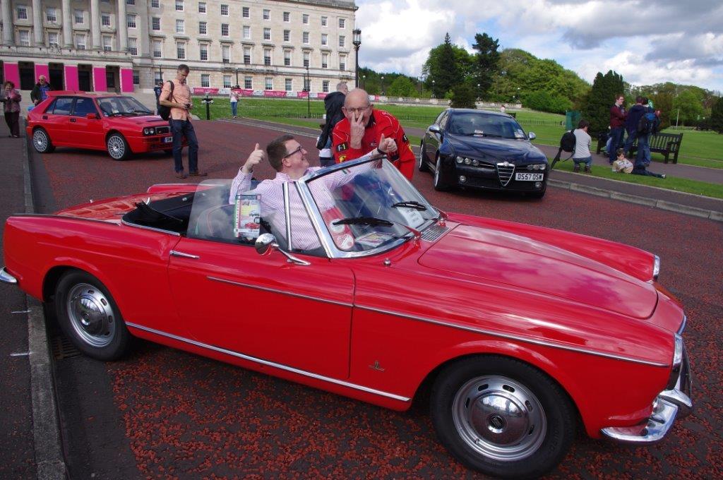 Thousands of people young and old embraced Giro d’Italia for 3 days from 9th -11th May as the cyclists swept through Northern Ireland. NIIMC members were keen to participate in the action and were delighted when Charles Hurst Specialist Car Division asked the club if we could display some of our cars in front of Parliament Buildings to complement the impressive collection of Maseratis and Ferraris that they had brought along.