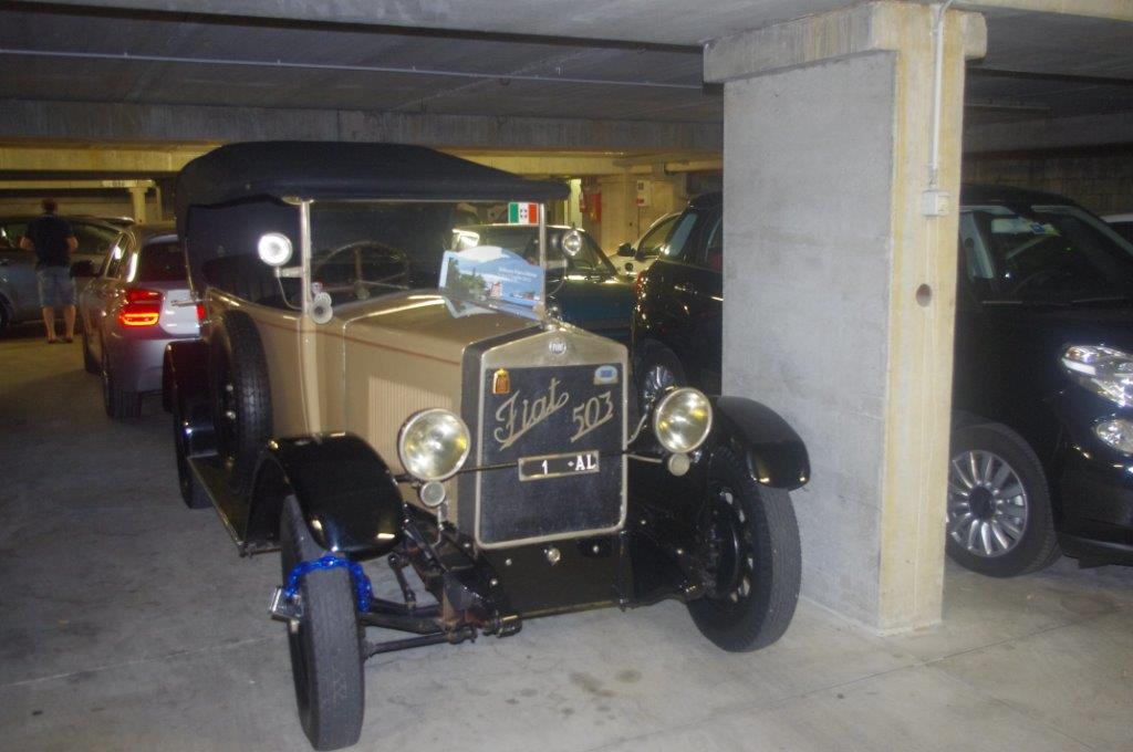 Lo and behold there were a selection of Fiats tucked away in the underground carpark, many of which I hadn’t seen before. I will let the pictures speak for themselves but I confess to not being able to identify them all. There was one in particular which provided little clue as to the model – the only obvious sign that it was a Fiat was the Fiat badging on the hub caps. I still don’t know what model it is or what year it was manufactured – if anyone reading this article does know then please put a post on the forum on the club website to enlighten me (check out the photo of the dark blue car with the registration 12258 PA)