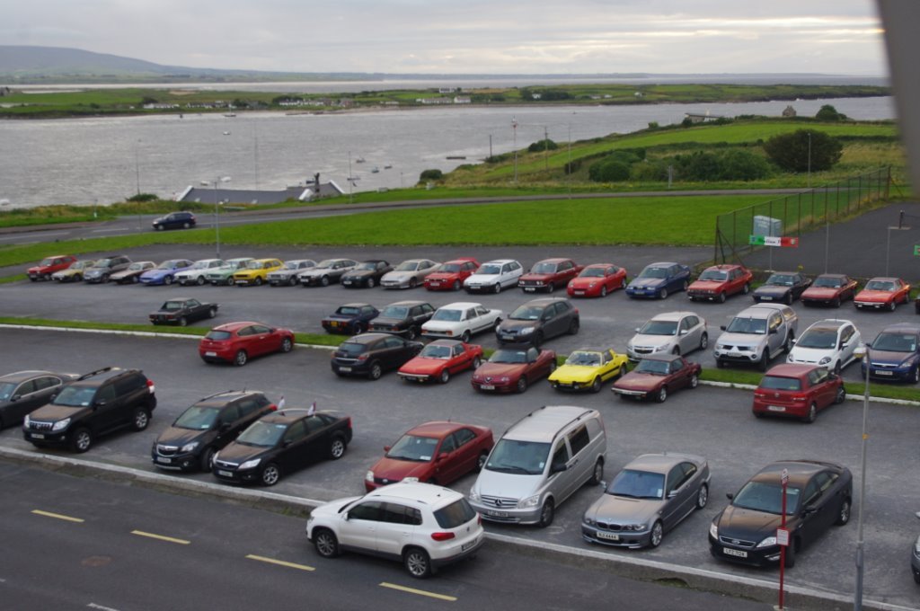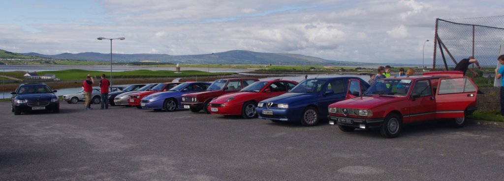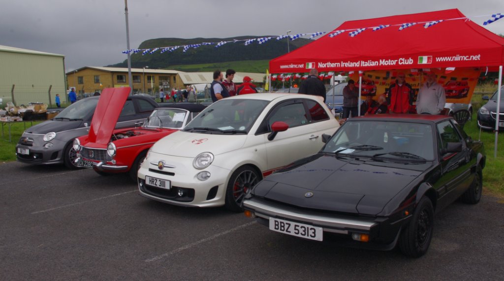The evening continued and some retired to bed at a sensible hour. Others who don’t get out too often didn’t and made merry until the wee small hours. The next morning after a substantial and tasty breakfast everyone gathered and prepared to set off for the Italian 100 gathering at Sligo airport. The convoy of 25+ Italian cars cruising from Rosses Point to the airport was quite a sight and we even picked up a few more NIIMC members along the way – they had set off early from the outskirts of Belfast and driven down for the event.