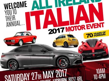 You are invited to attend our annual show on Saturday the 27th May from 10am to 4pm at Lagan Valley Island in Lisburn. All Italian vehicles welcome. Ferrari is 70 years old this year. We hope there will be a great turnout of cars from Maranello!