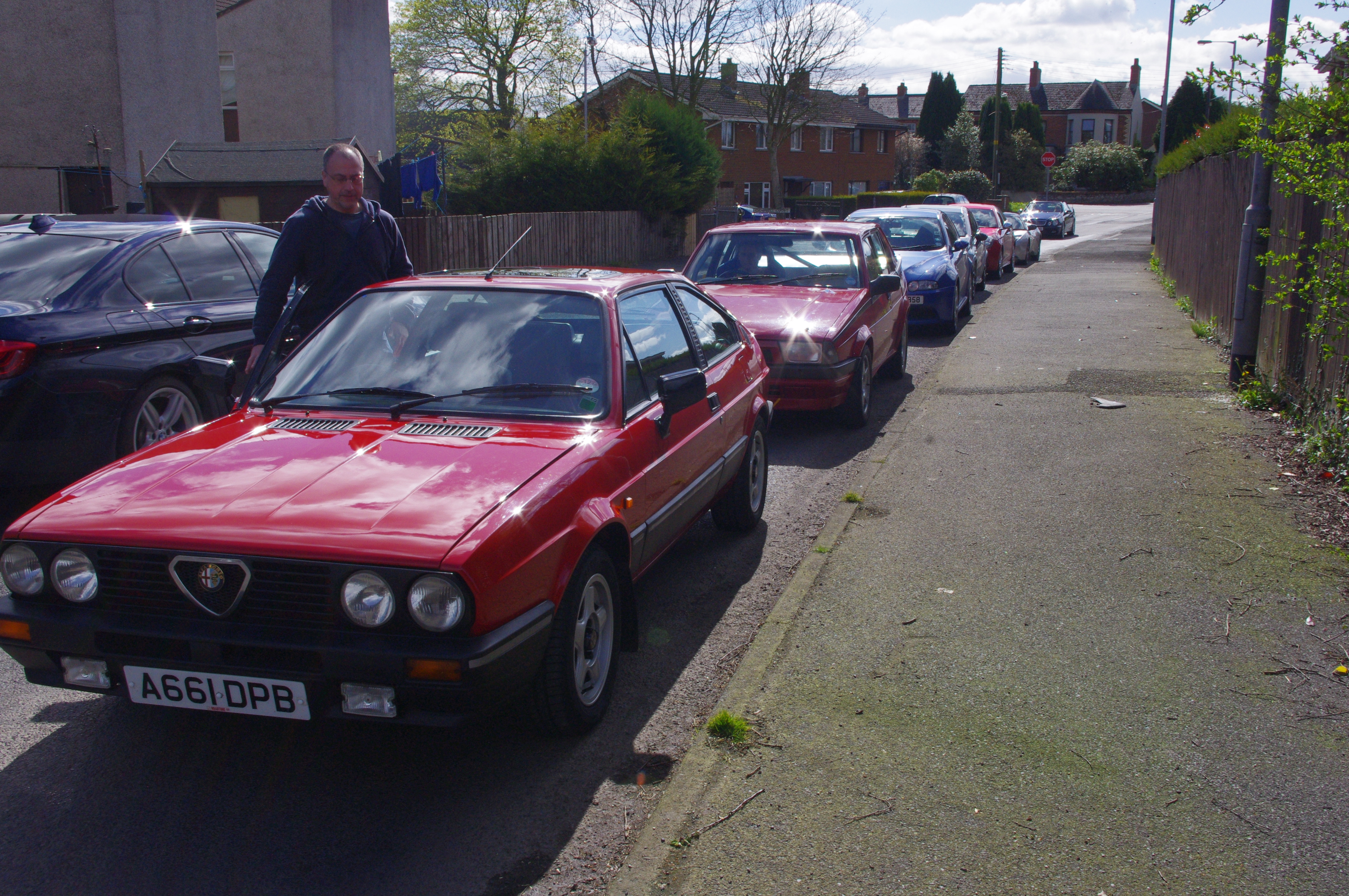 The line up was led by Alastair in his Alfasud Sprint and he set the pace on a series of challenging but entertaining country roads as we travelled from Down Royal to Nutts Corner and then on to Templepatrick. At that stage the pace was too much for Johnny in the Ferrari and he peeled off to head home. The remaining six headed on to Ballyclare, Larne and then back up the coast road to Carrick. It was a spirited run and despite our best efforts we couldn’t shake off the Lotus Evora boys (only joking Simon and Luke!!).