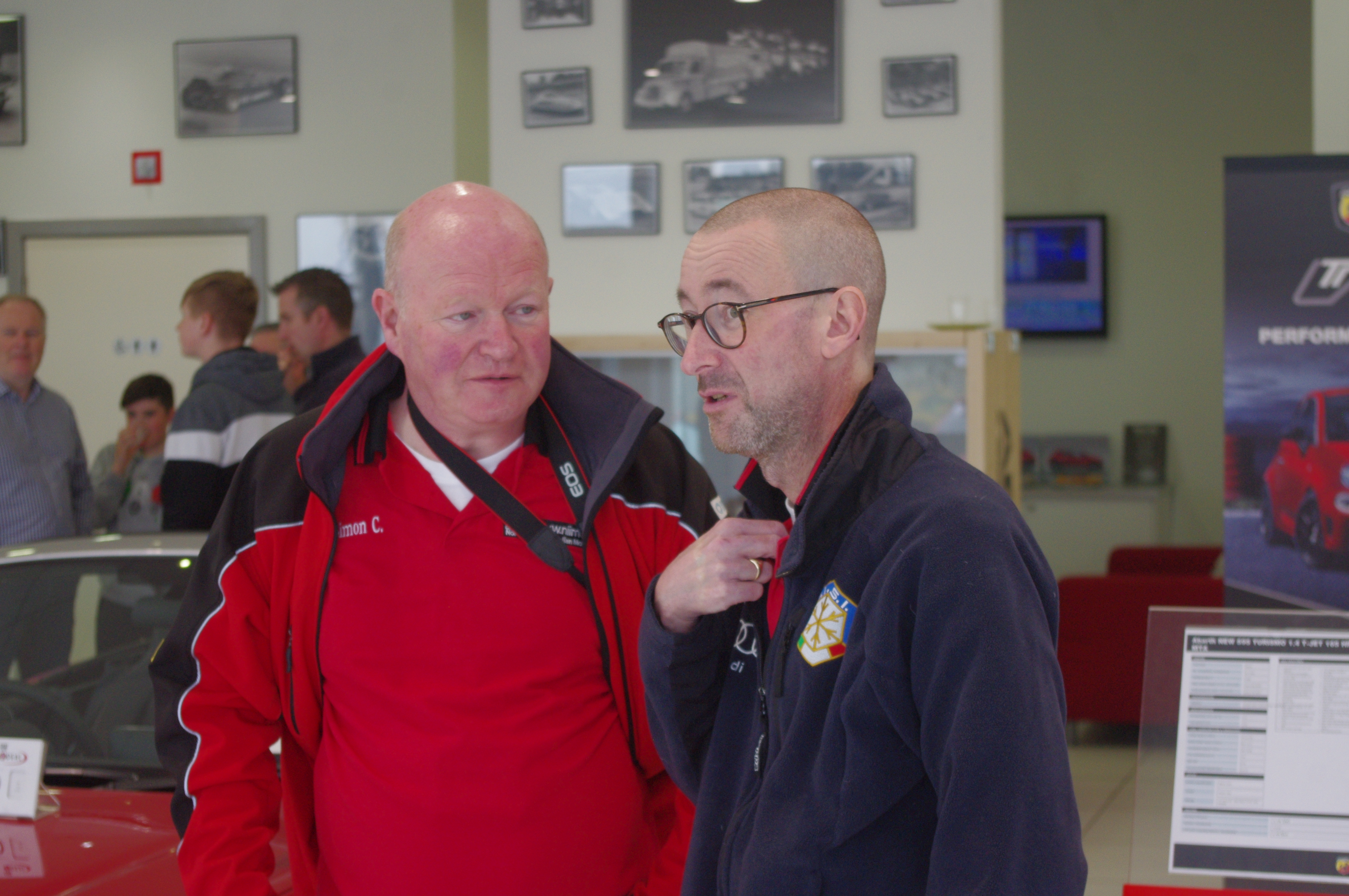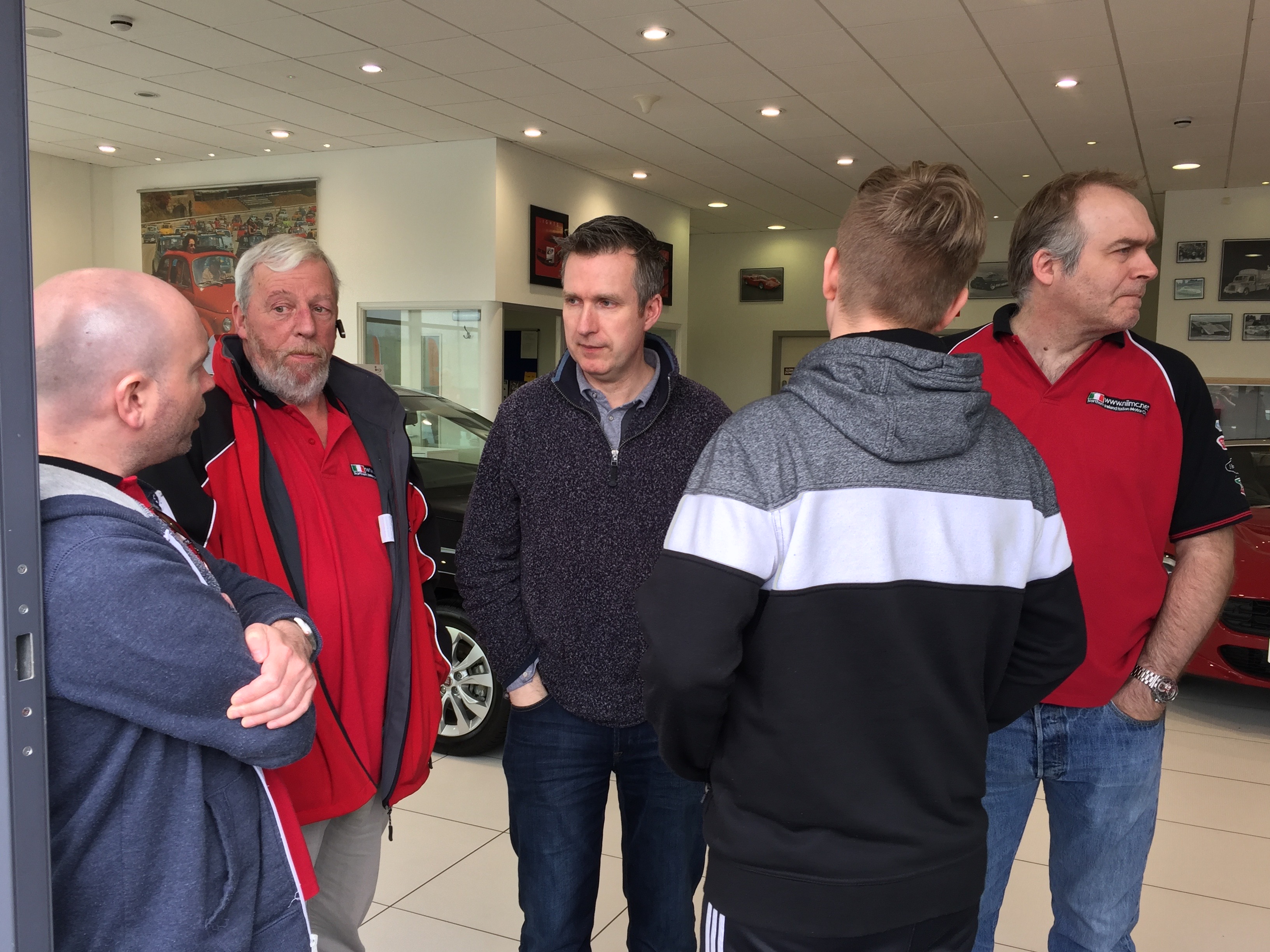 Stuart Pedlow, the Sales Manager and the other sales staff at Donnellys were the perfect hosts and chatted at length to NIIMC members about their passion for Italian cars. After some photos and video footage of the NIIMC fleet of cars leaving the Dungannon showroom the cars set off cross country for Campsie. Waiting for them on arrival was Sales Manager, Brent Crawford who welcomed NIIMC members to the showroom before showing us the facilities and the cars on display. Brent and his team mingled with club members and generously provided a spot of lunch which was dutifully consumed.