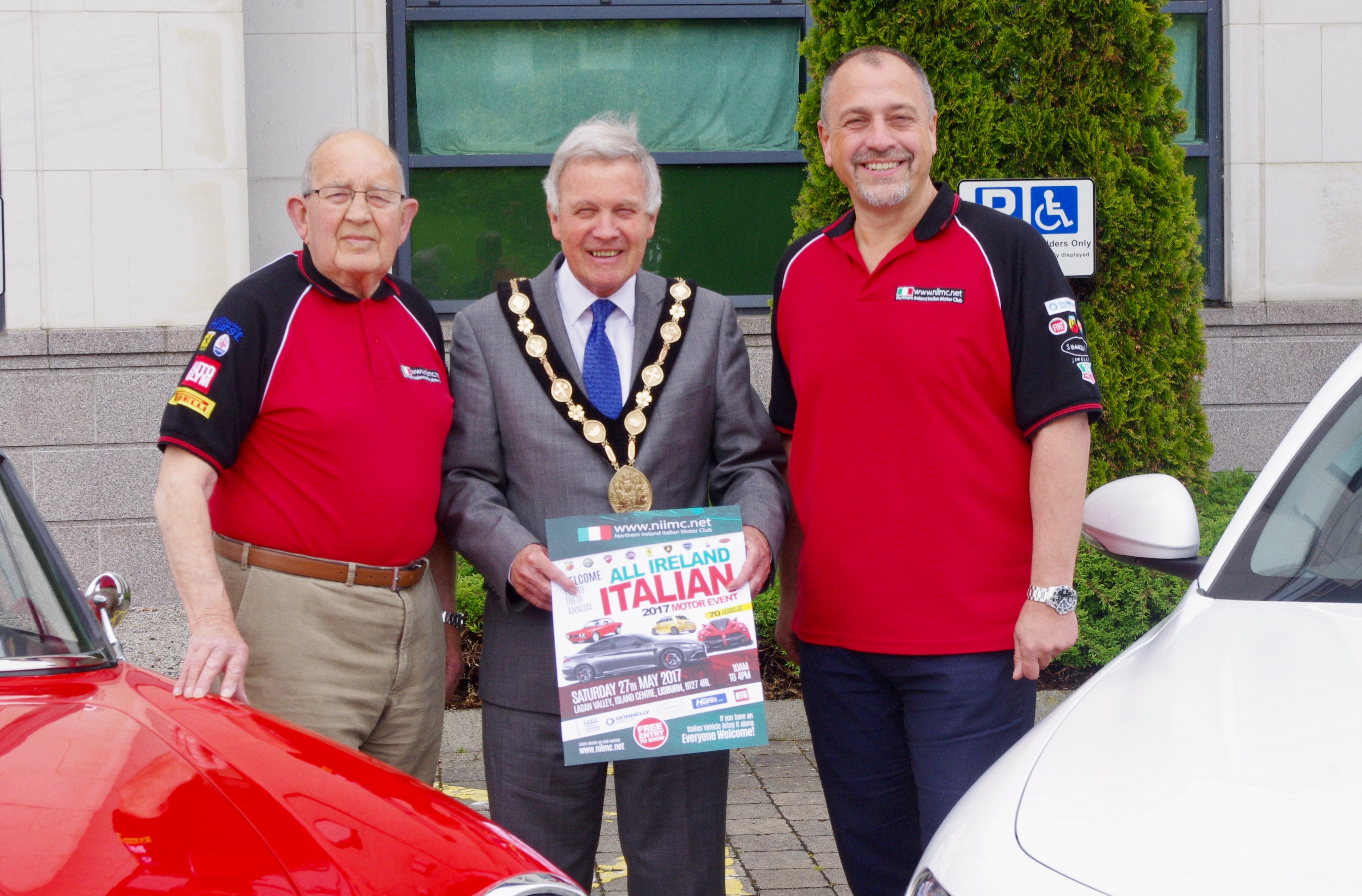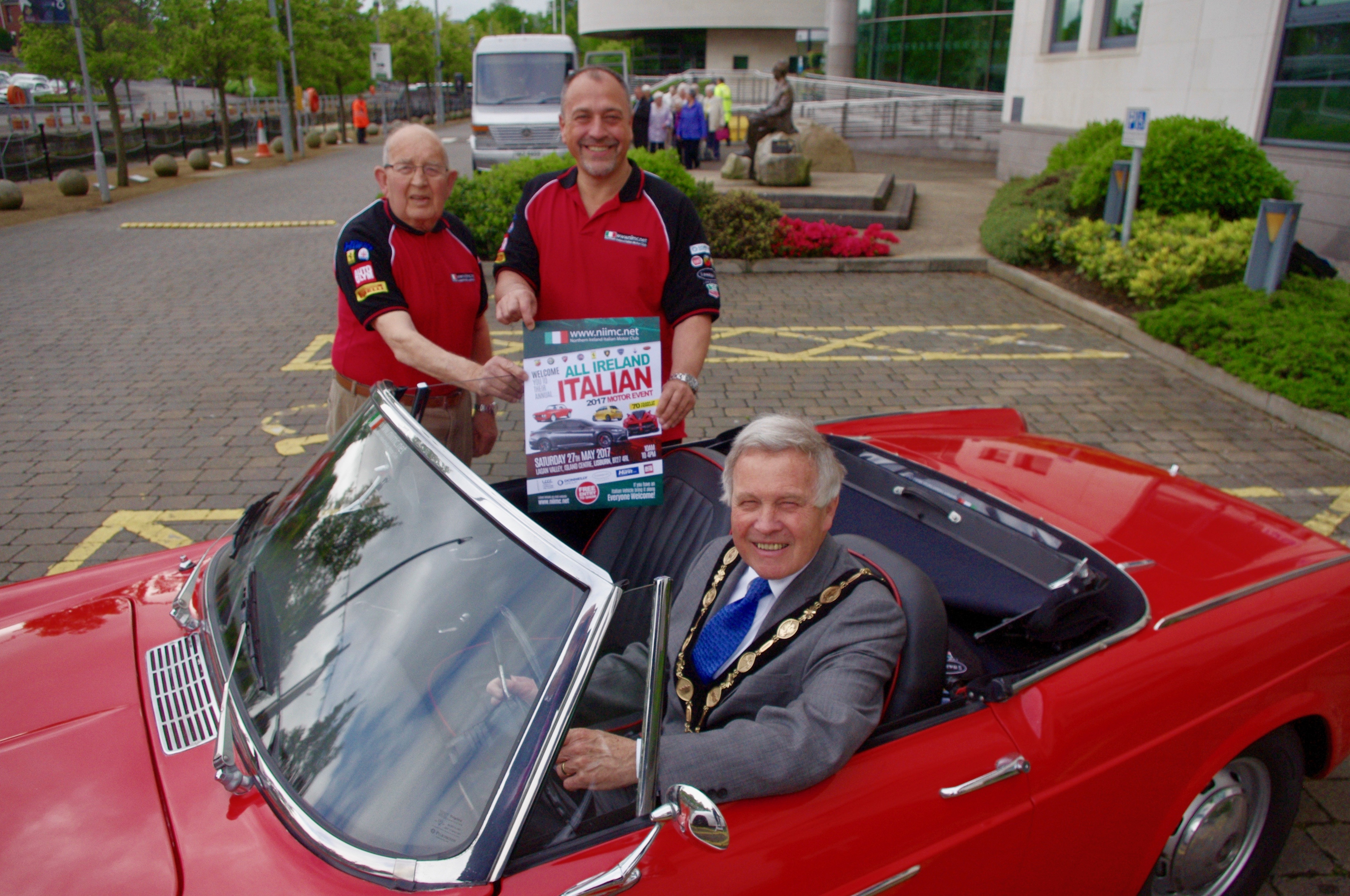 The Mayor was interested to learn more about the range of cars and motorbikes that we hope will be present at the Northern Ireland Italian Motor Club’s show at Lagan Valley Island on Saturday 27 May and promised to make every effort to join us to officially open the event and welcome everyone to Lisburn City.