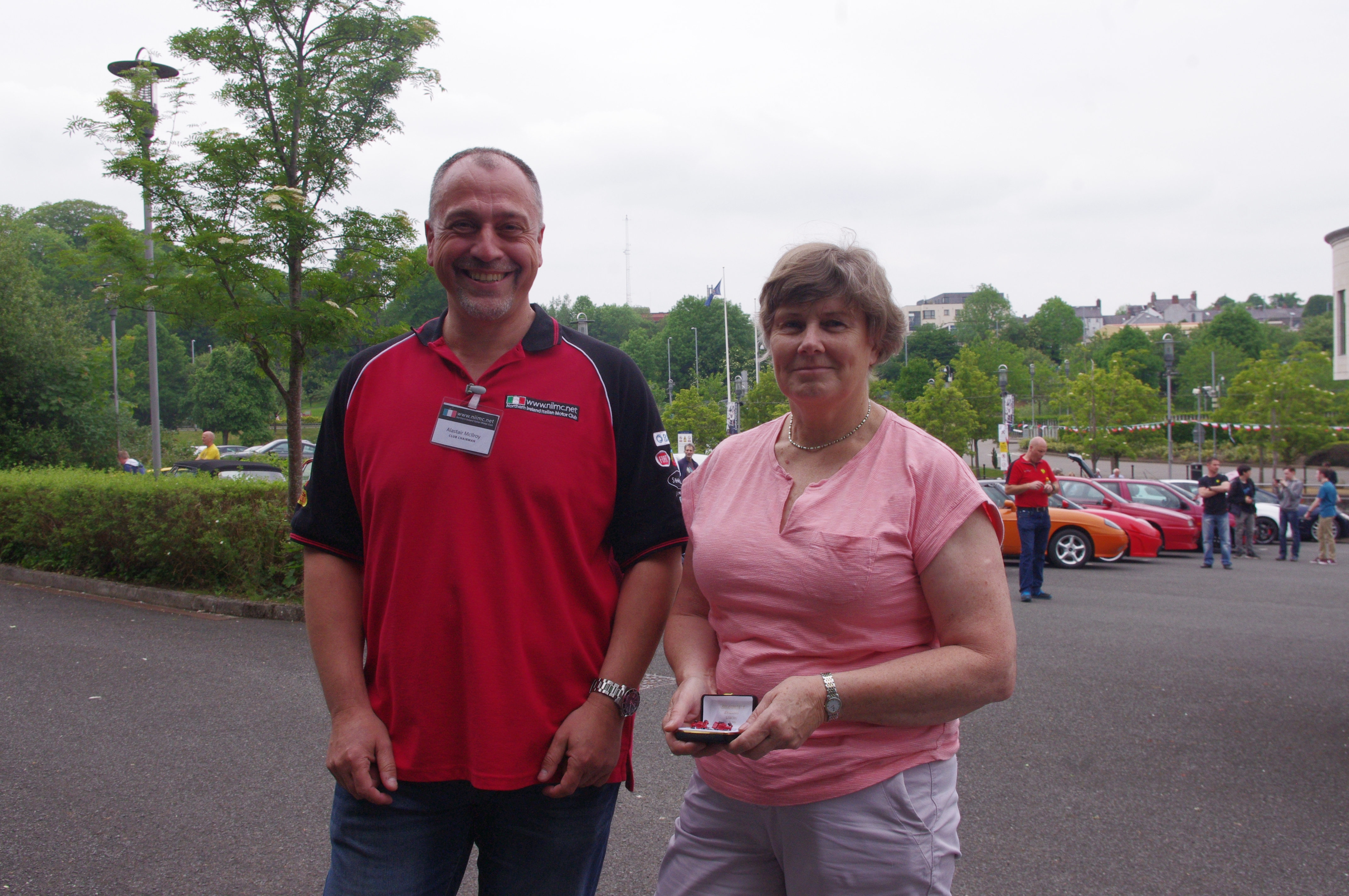 The Mayor of Lisburn and Castlereagh, Brian Bloomfield MBE officially opened the show and he and his wife were escorted by Club Chairman Alastair McIlroy around the carpark to meet the car owners and look at Italy’s finest. With the arrival of over a dozen cars driven by members of the Alfa Romeo Owner’s Club Southern Section the line-up was almost complete.