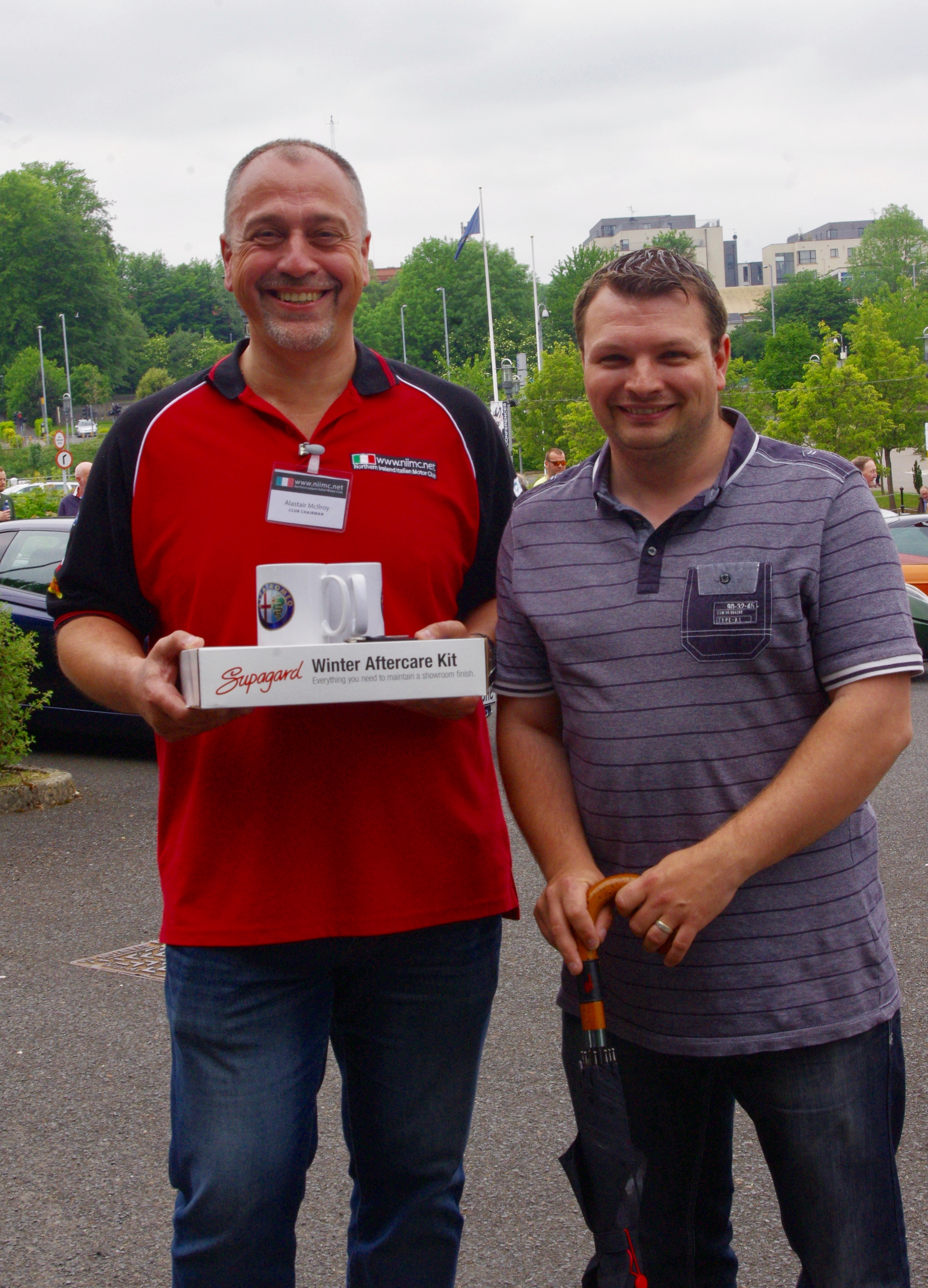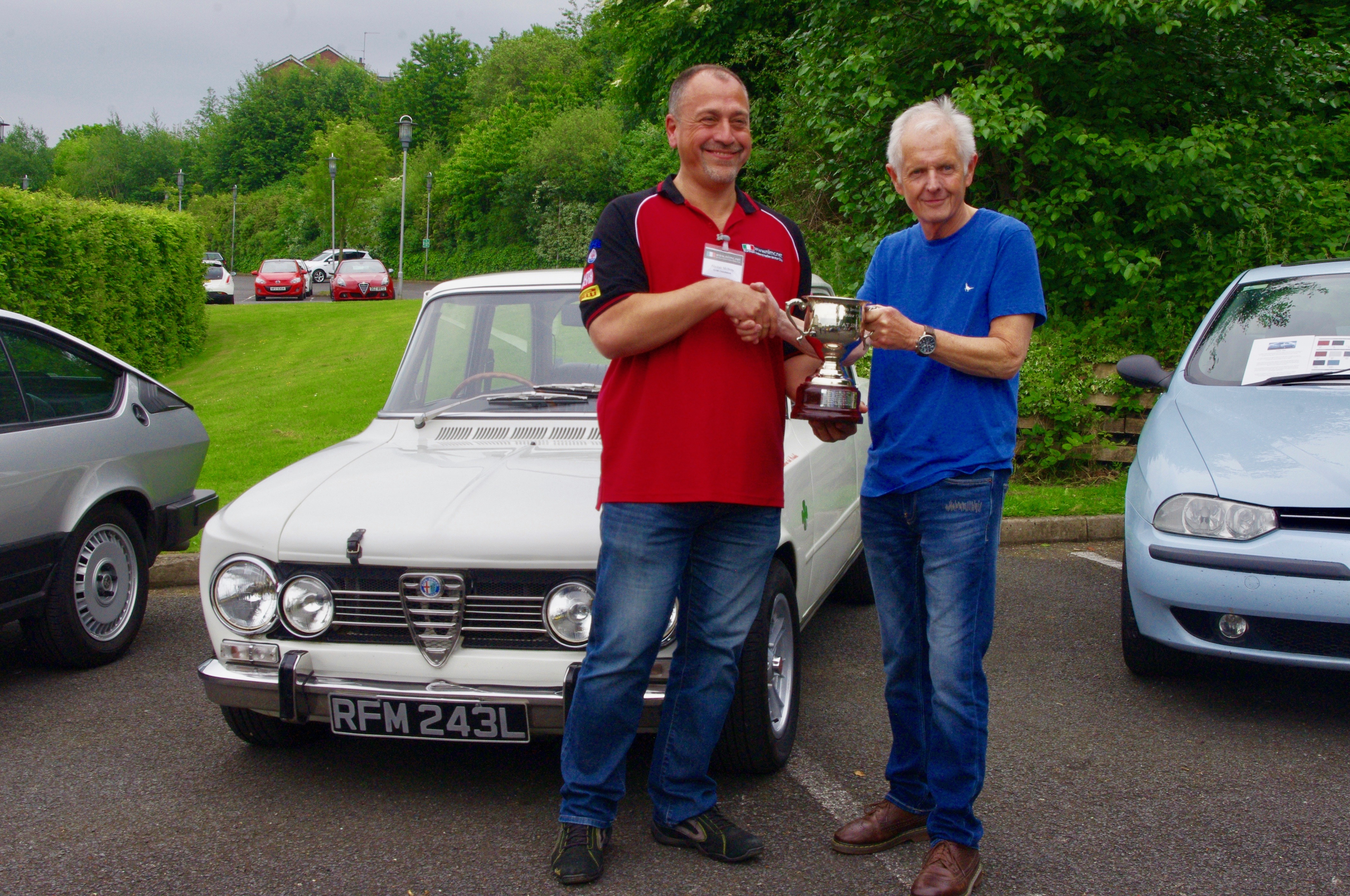 A number of prizes in various categories were awarded and our thanks goes to the sponsors and exhibitors for their generosity in donating these to the worthy winners. The overall Best in Show award winner was selected by Phil and Michael Ward and this year’s winner was Richard Busteed for his 1972 Alfa Romeo Giulia Saloon – Richard was presented the Best in Show Cup by Alastair, our Club Chairman.