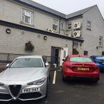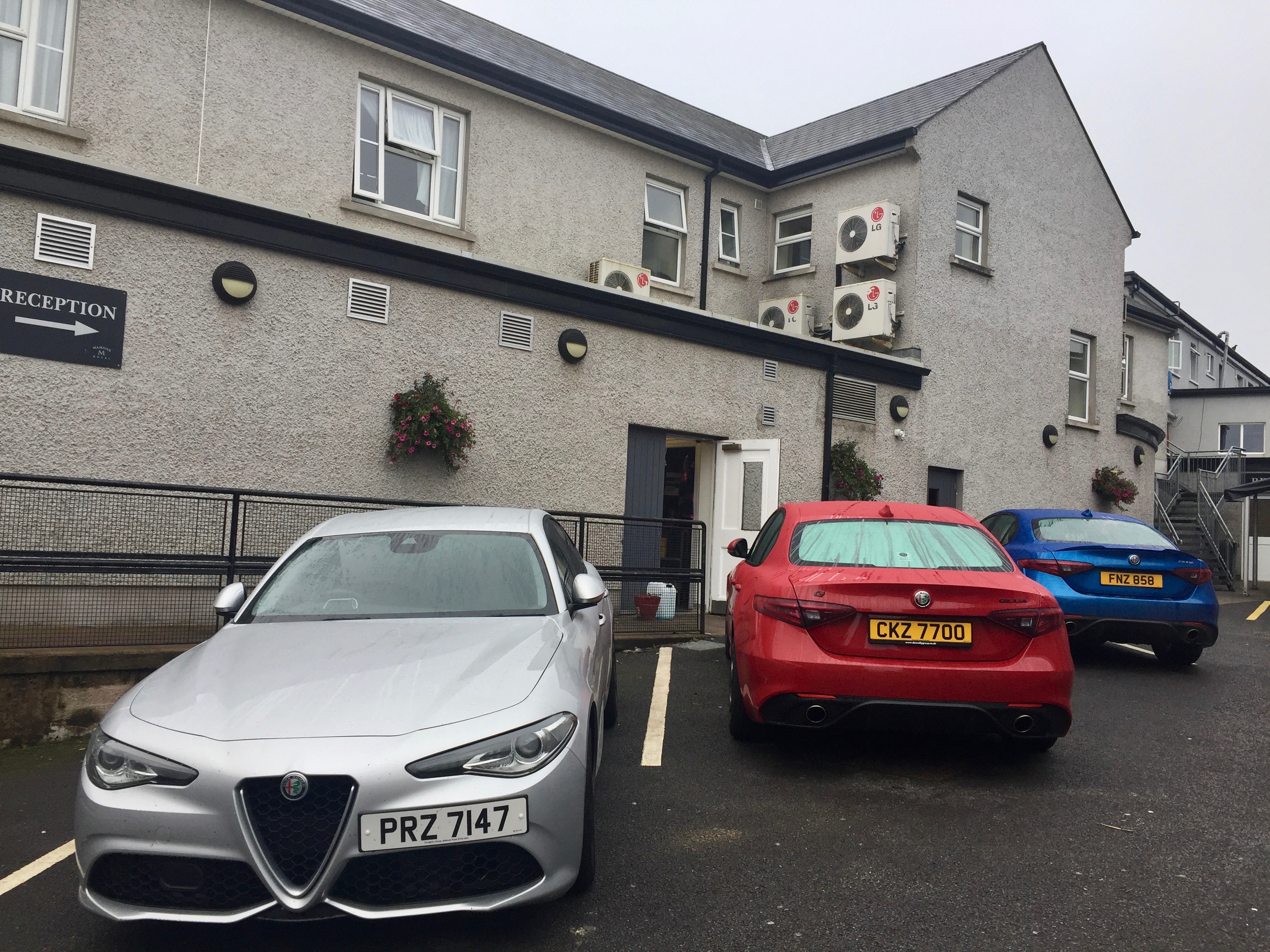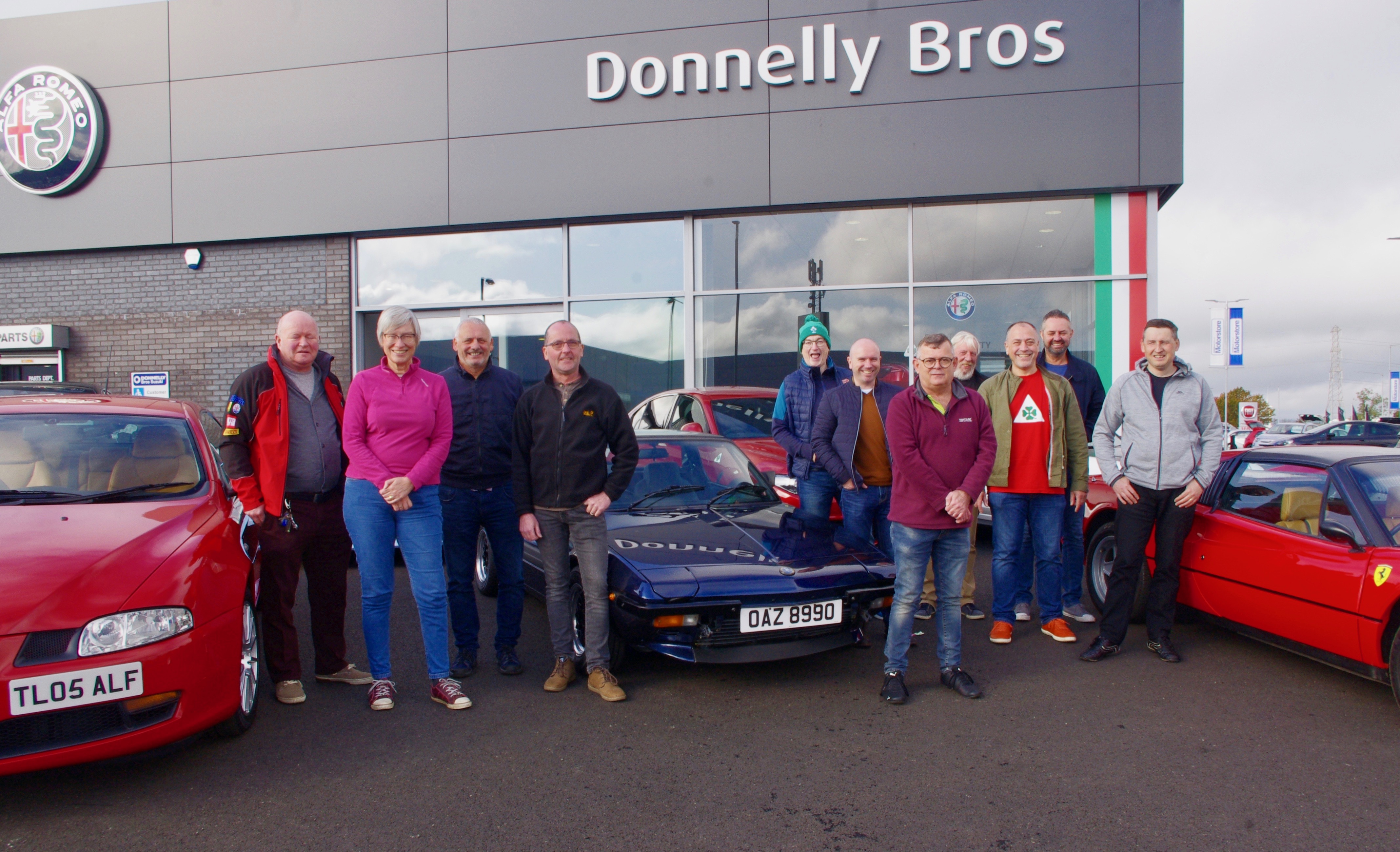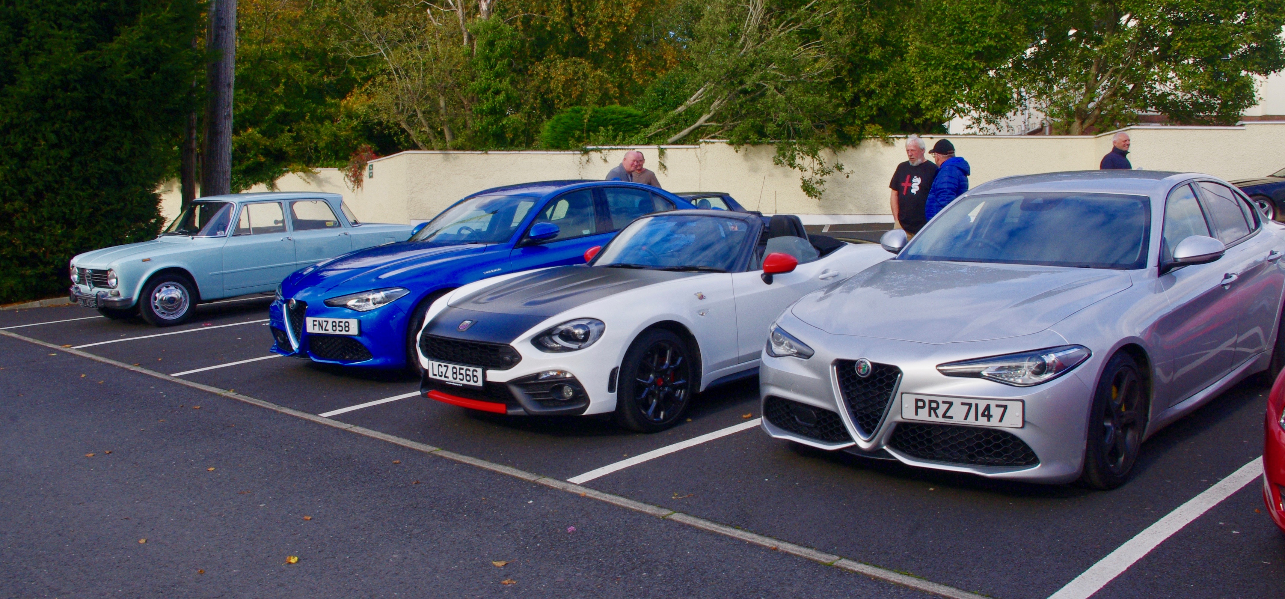To spice things up a little more Bryan Pearson led us from Cookstown to our next stop, a beautiful viewpoint in Enniskillen, along some challenging A+B roads which tested the credentials of the selection of Italian cars, both old and new that had come on the trip. After a short stop to admire the views and take a few photos we decided to do a loop around part of Lower Lough Erne before heading to Mahon’s Hotel in Irvinestown where we would be staying overnight. With the cars safely parked up we enjoyed some welcome liquid refreshment and marvelled at the wide range of tasty dishes on the dinner menu. Everyone agreed that the food was top quality, great value for money and was served by friendly staff who were very attentive and looked after us throughout the evening.