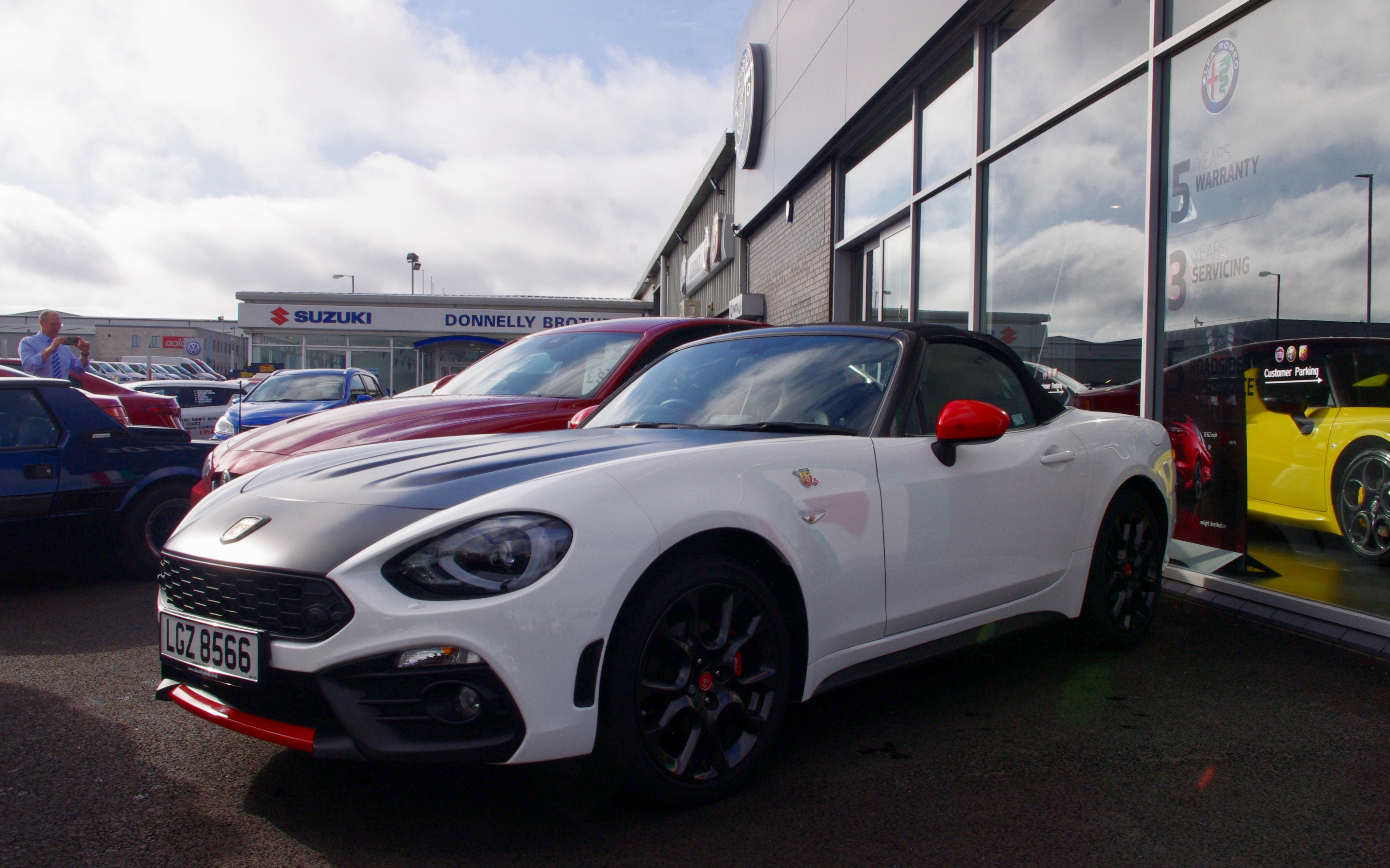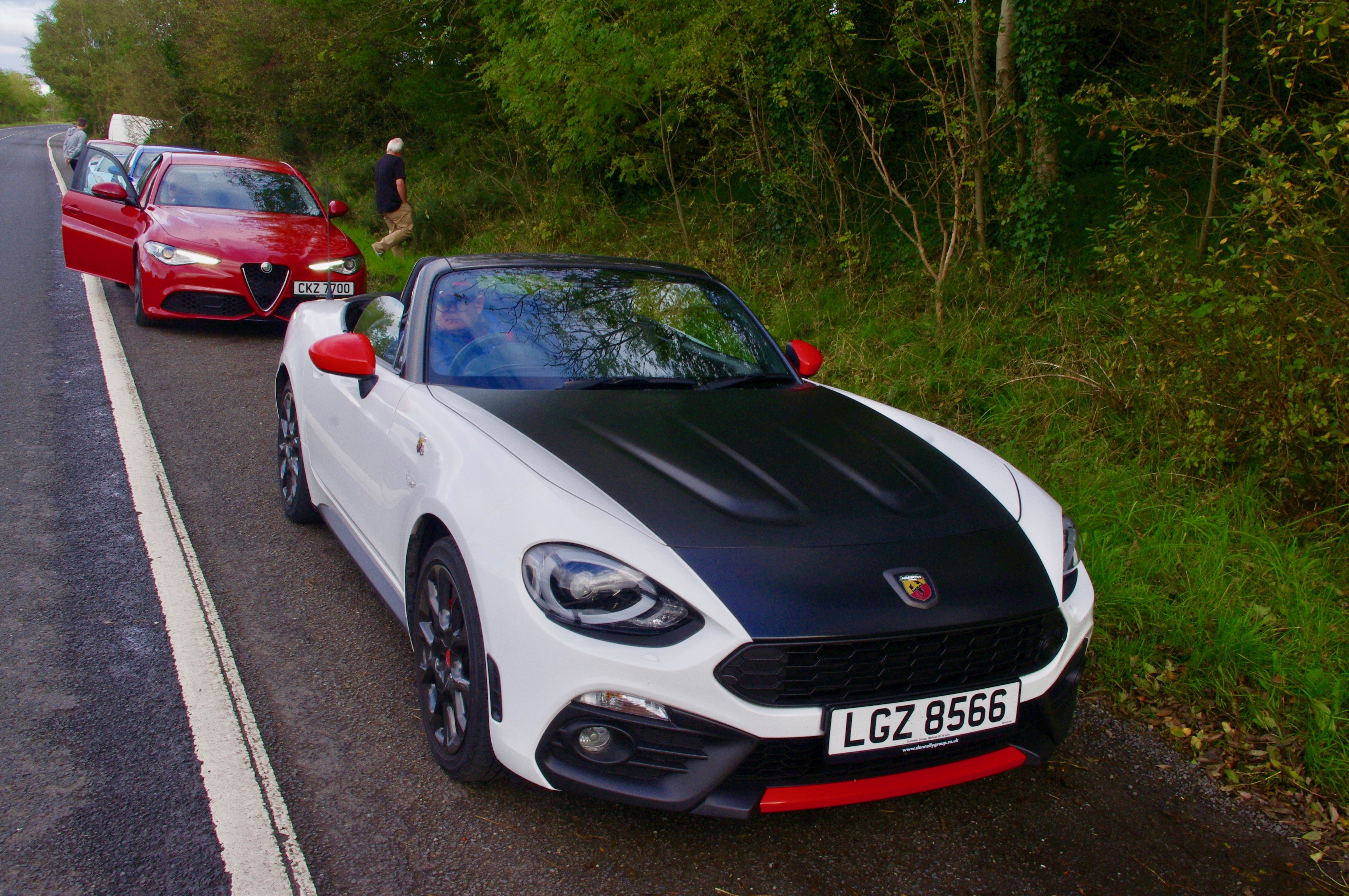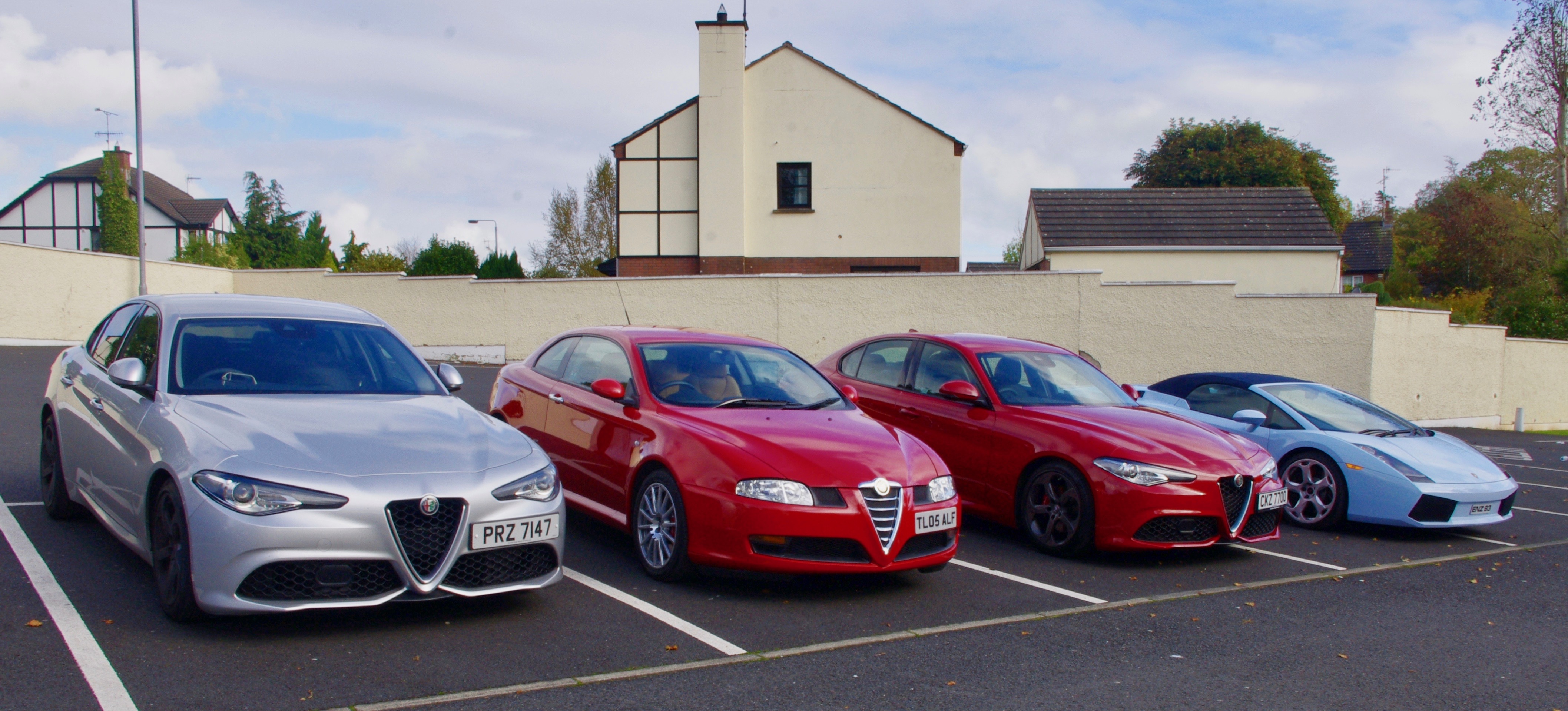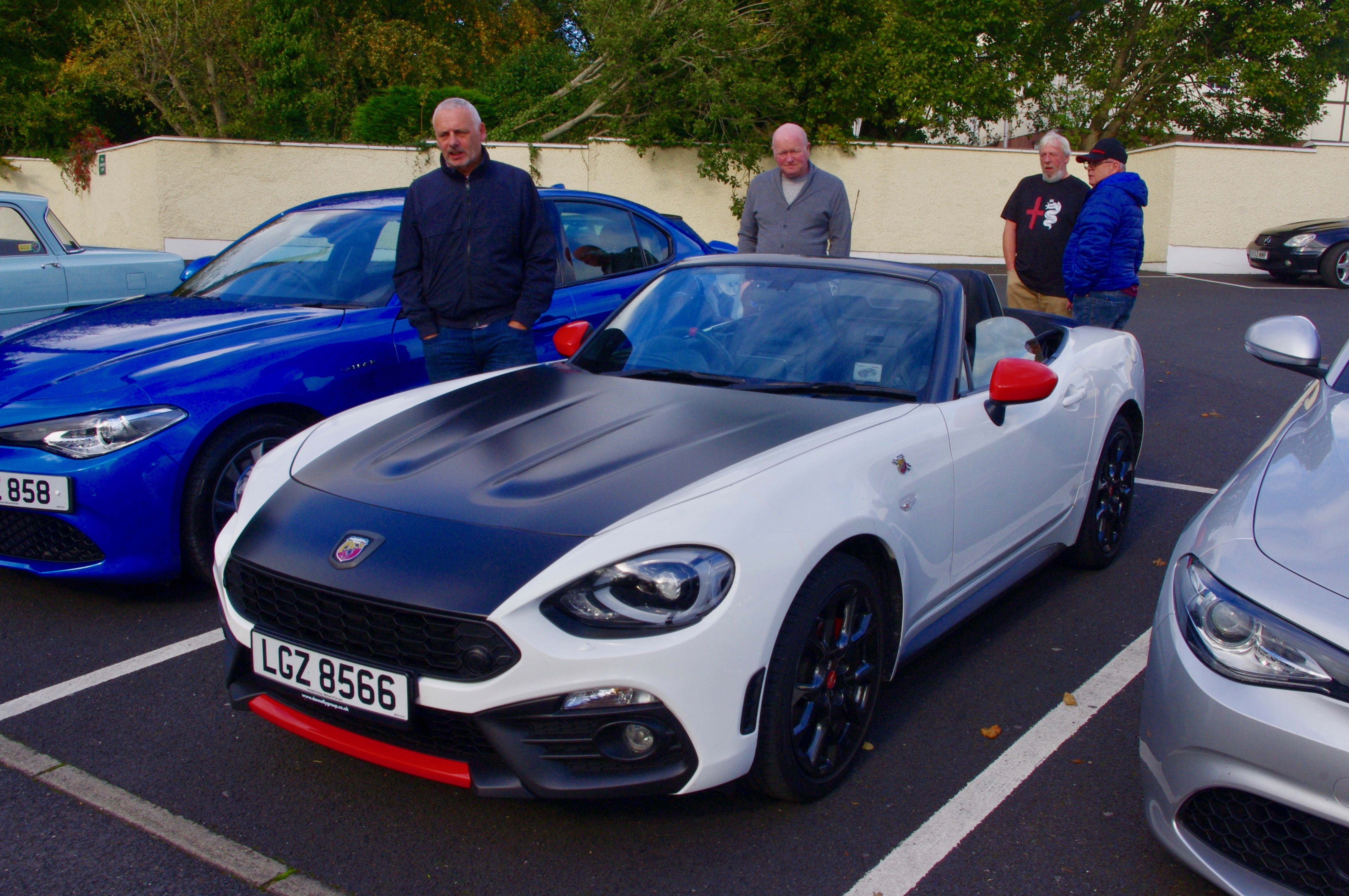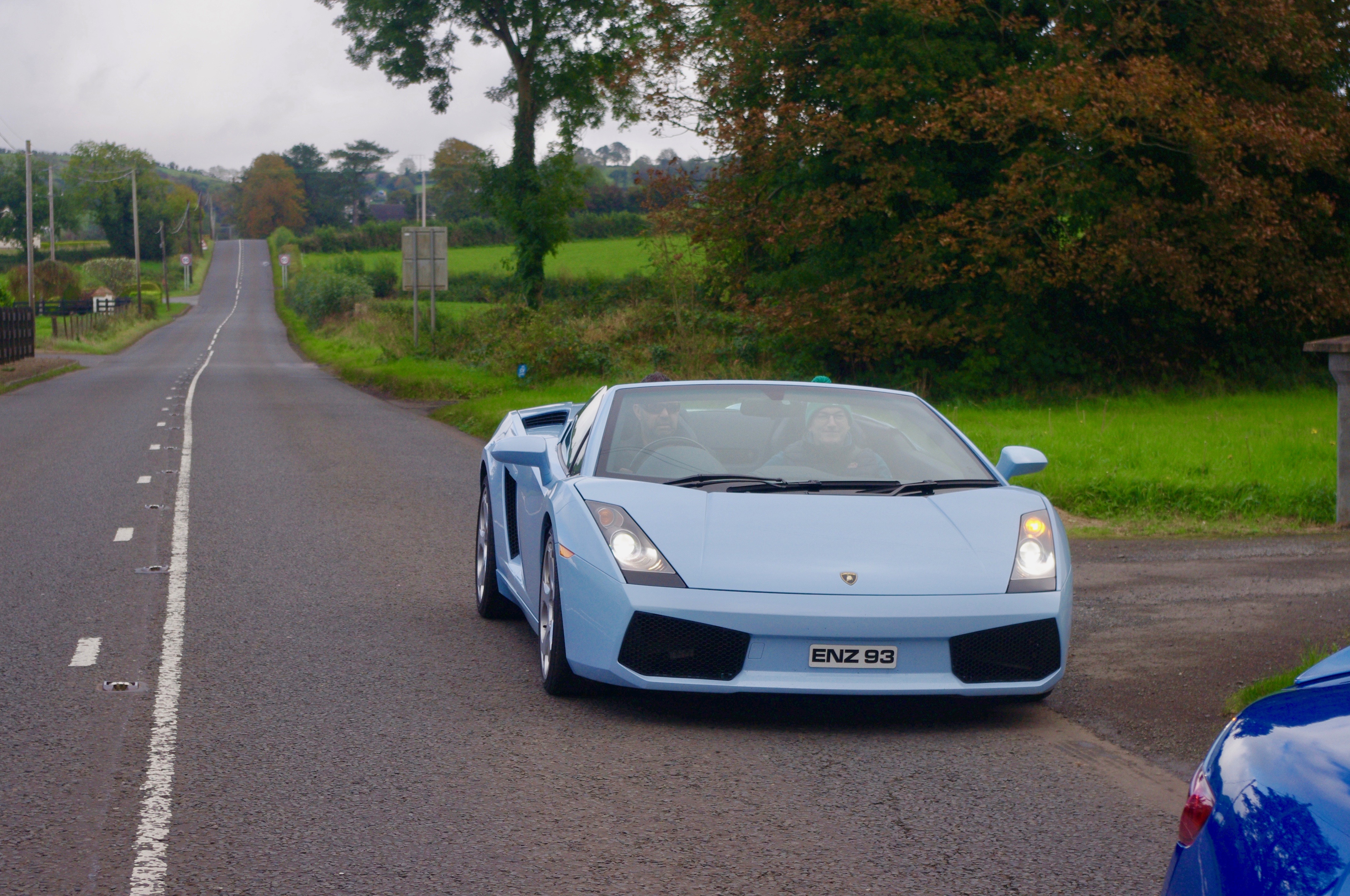 From Mallusk we headed to Templepatrick, Antrim, Randalstown and then on to Cookstown via a few more reference points on the way. We travelled in convoy and attracted many admiring glances for those who appreciate Italian style and the soundtrack to go with it – whether that be the burble of the 124 Abarth, the smooth Busso V6 or the rowdy V10 courtesy of Johnny McCall in his Lamborghini Gallardo Spyder along with his travelling companion Simon. As the weather was dry and sunny the hood went down and the Lambo boys did a bit of posing.