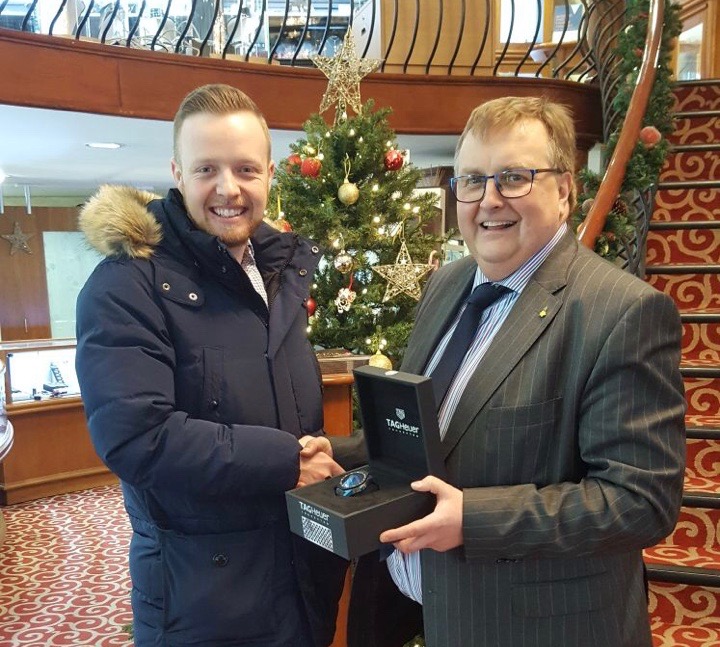 Congratulations to Ryan Donnelly, this year’s lucky winner of the NIIMC prize draw for a TAG Heuer Connected watch. Ryan bought his entry for the draw at our annual show in May and was delighted to take a call from Club Secretary Tim Logan a few weeks ago to confirm that his ticket had been picked during the grand draw at our annual dinner on 8 December at Lisburn Golf Club.